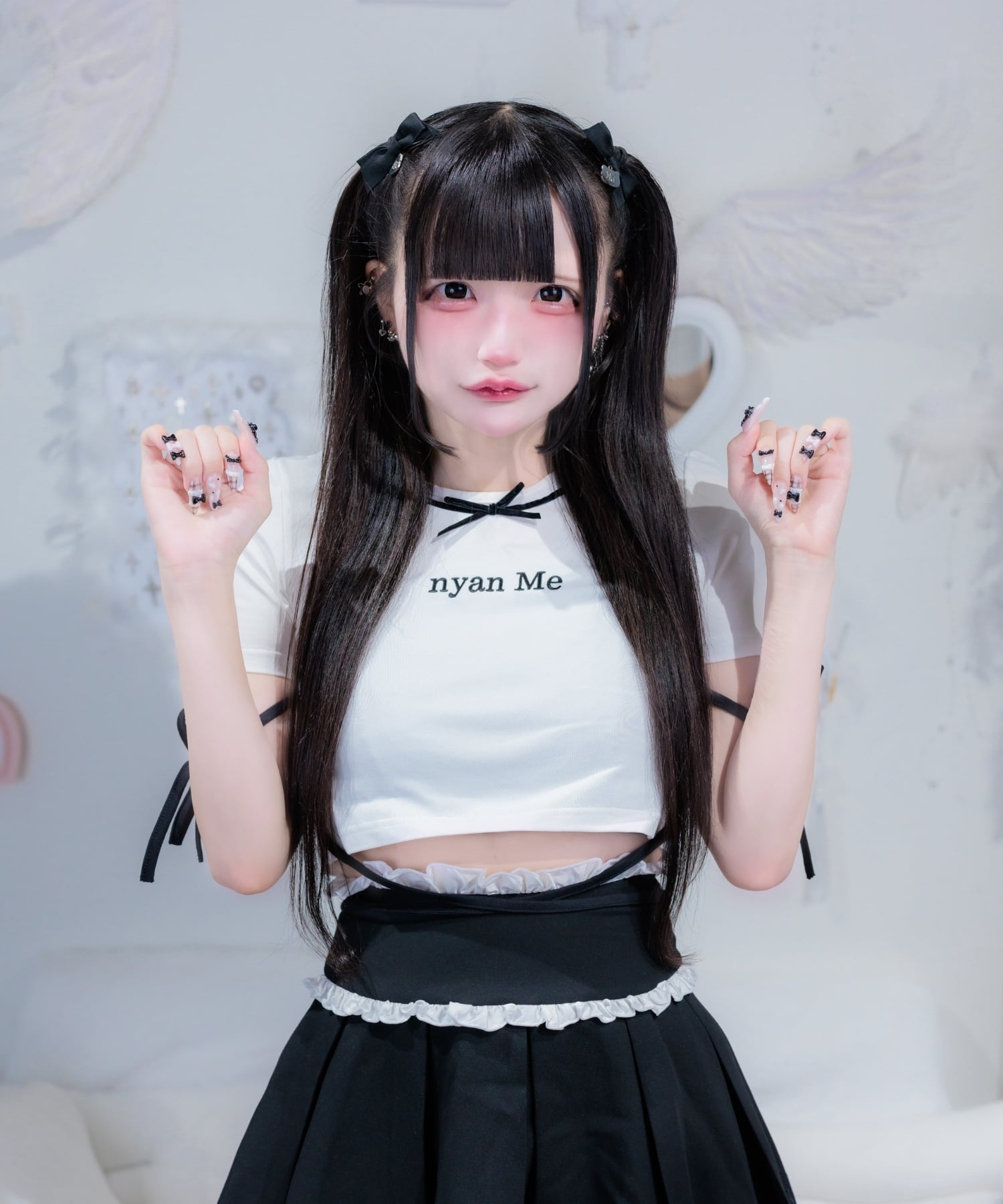 胸元のnyan Meロゴとベロアリボンがポイントです。