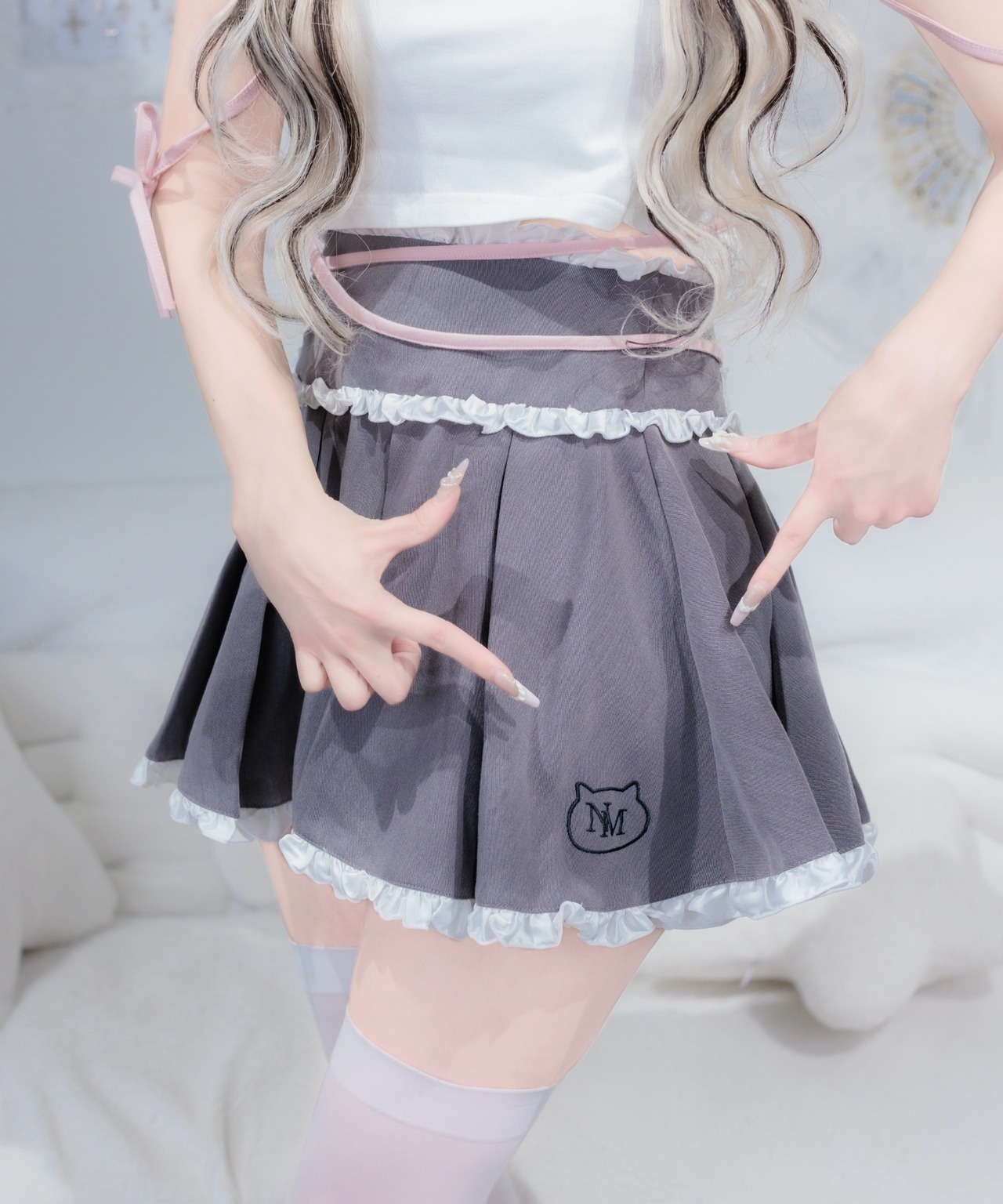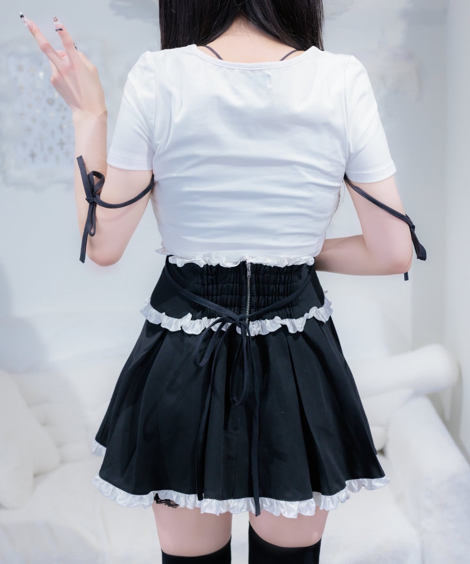 ウエストと裾のフリルがポイントのプリーツスカート♡