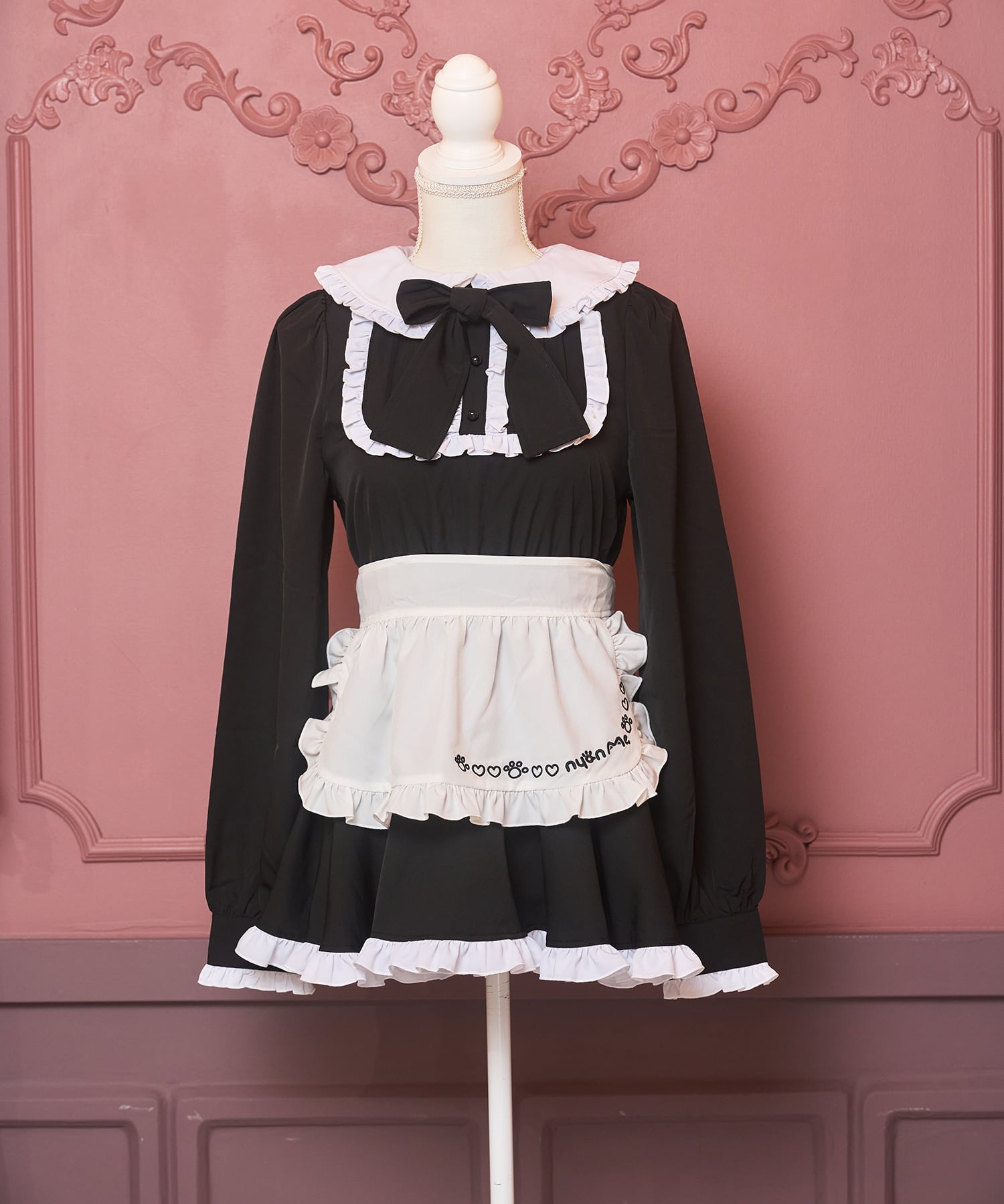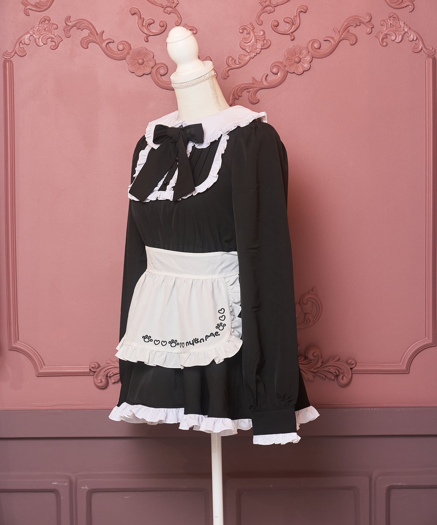 大きいリボンがポイントのワンピースとエプロンの2点セットです。