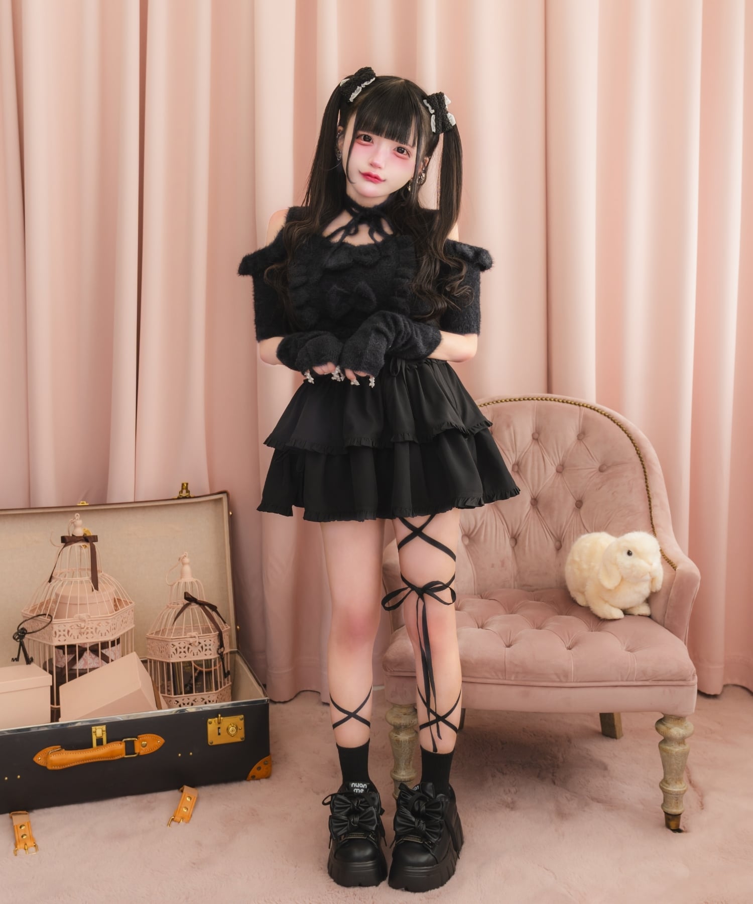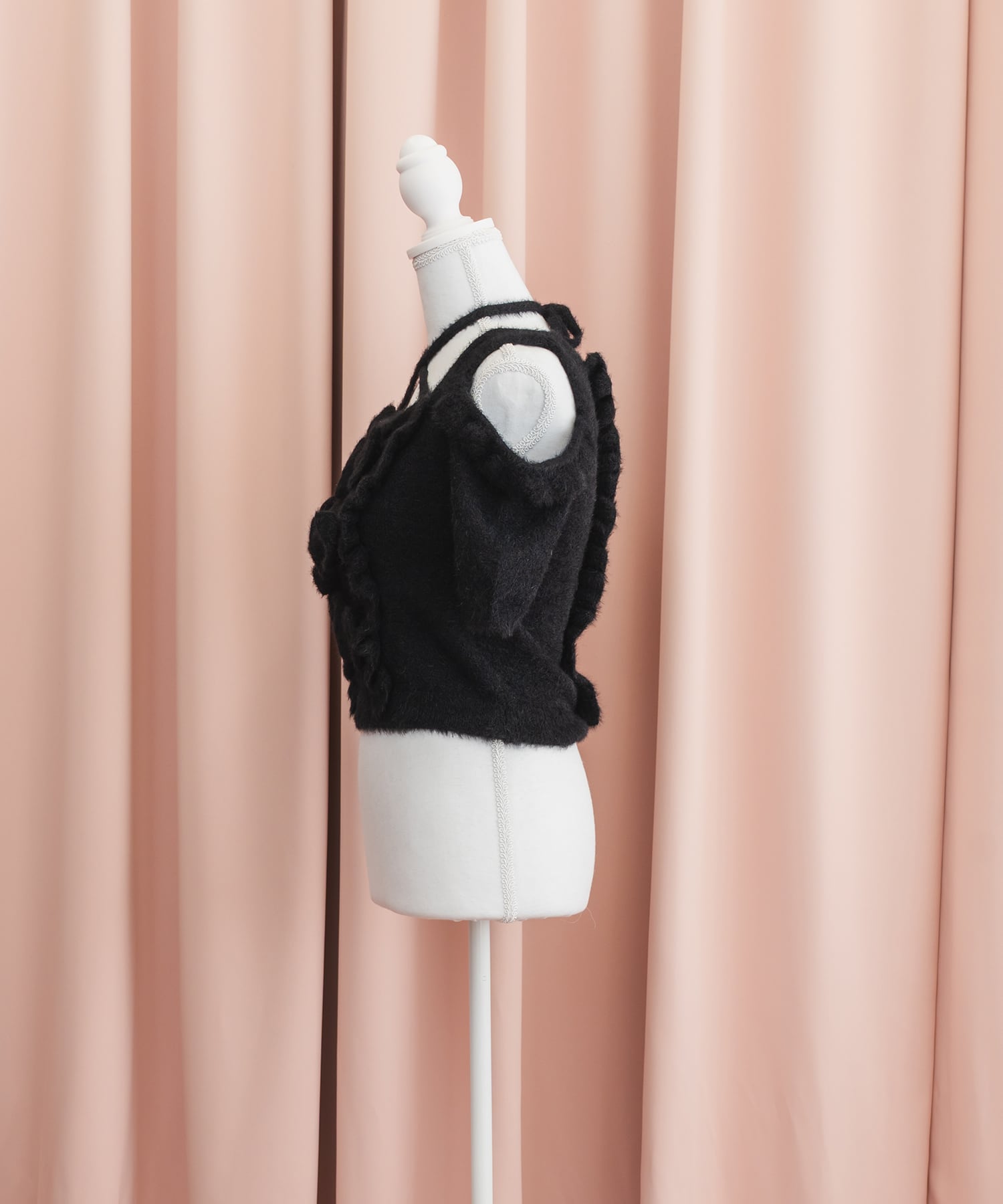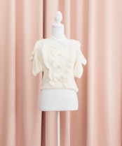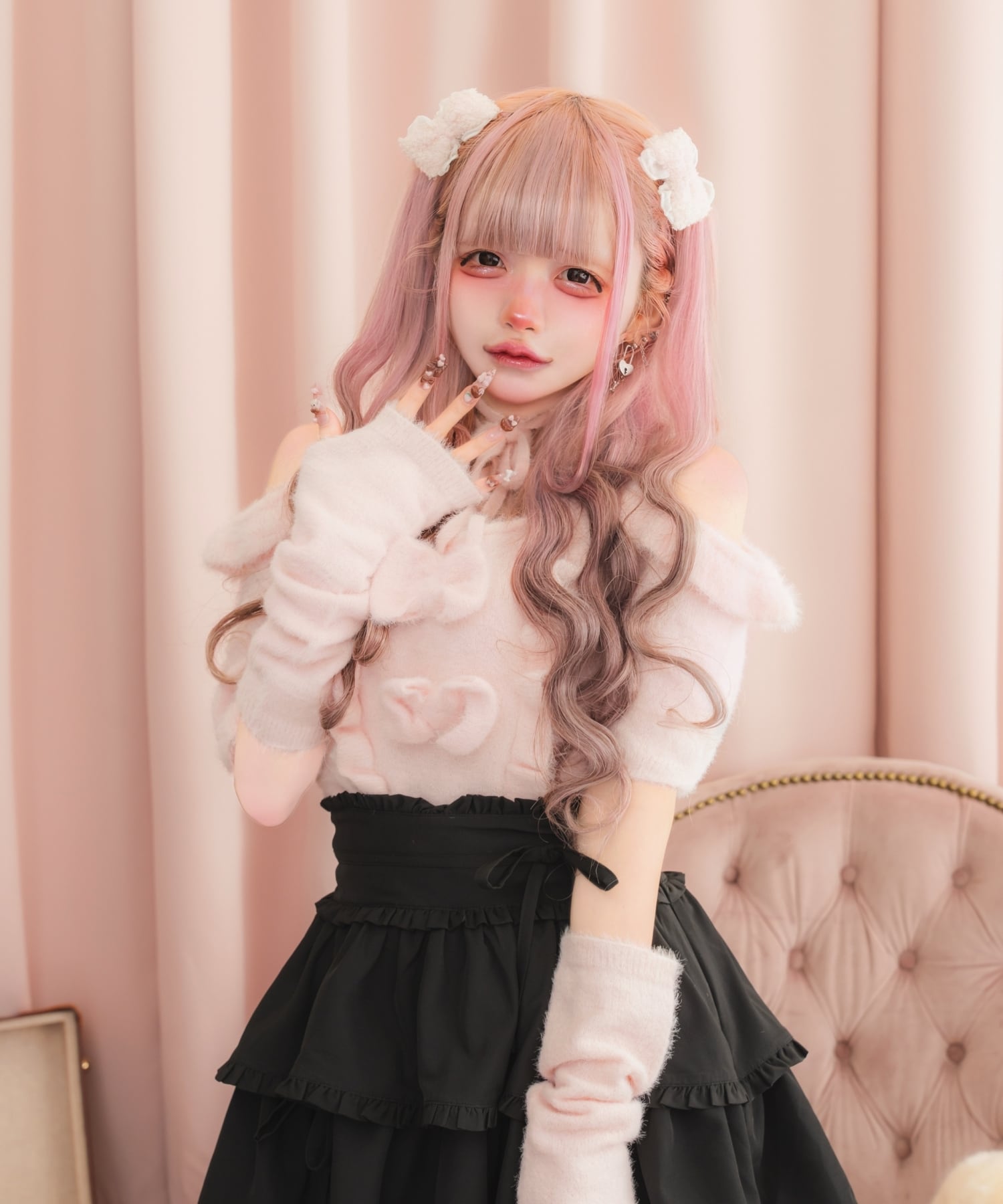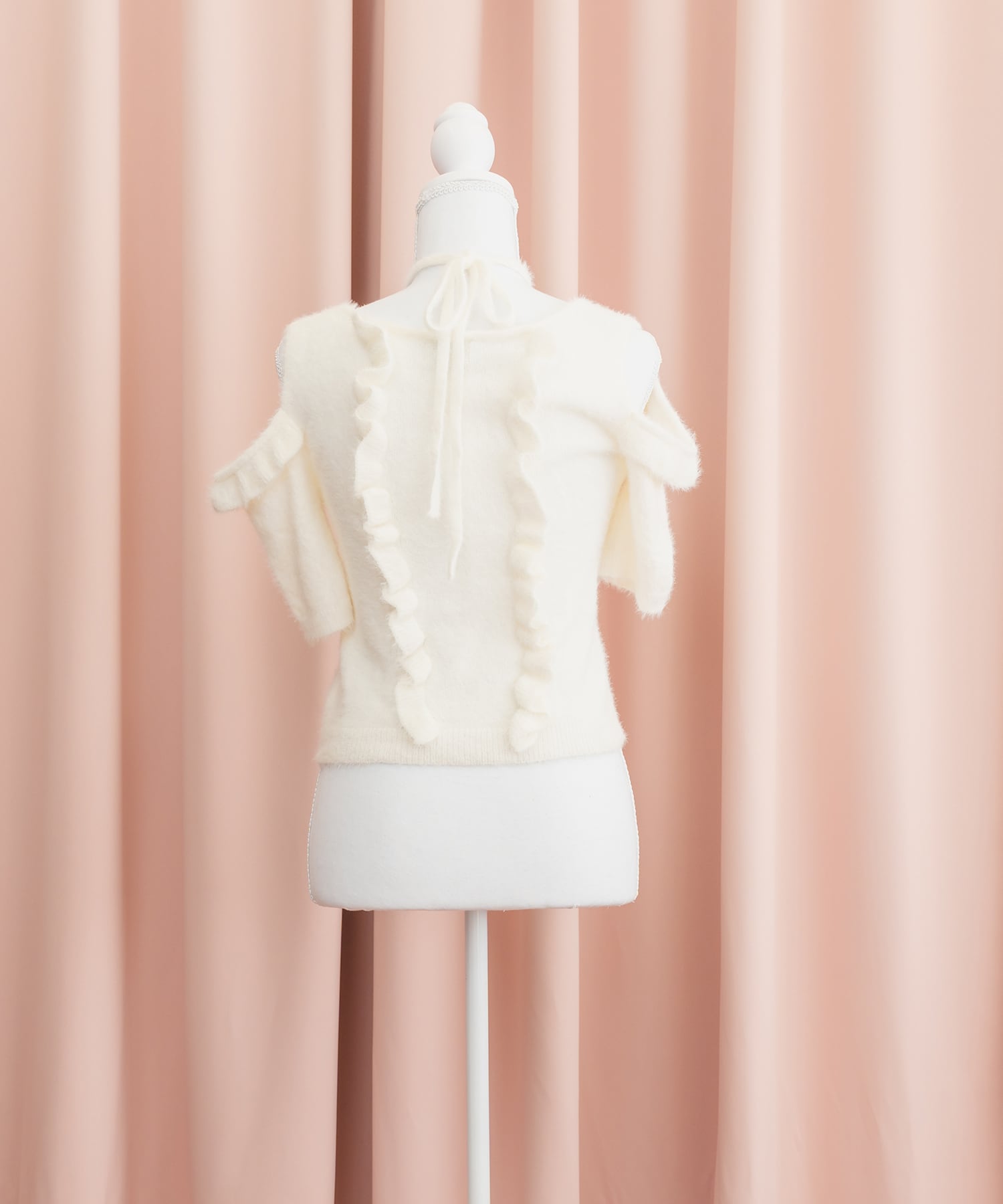 リボンとフリルのディテールがかわいい、アームカバー付きニットトップス♡