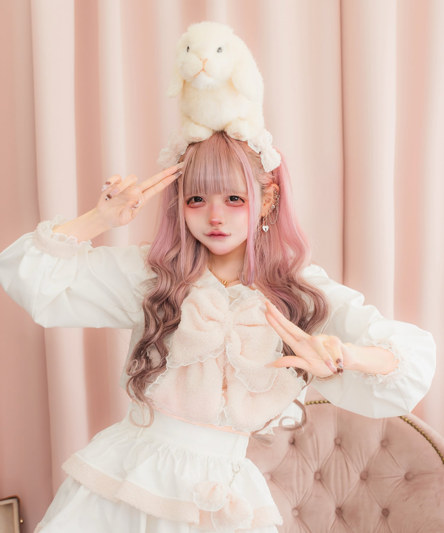 着用画像はリボンの長い方を内側に折り込んで付けてるよ♡
