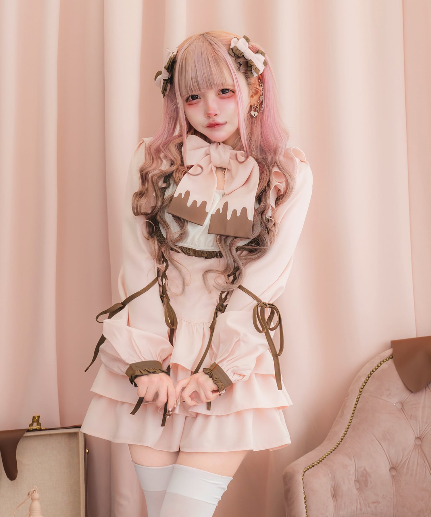 とろけたチョコみたいなリボンがポイントのワンピース。