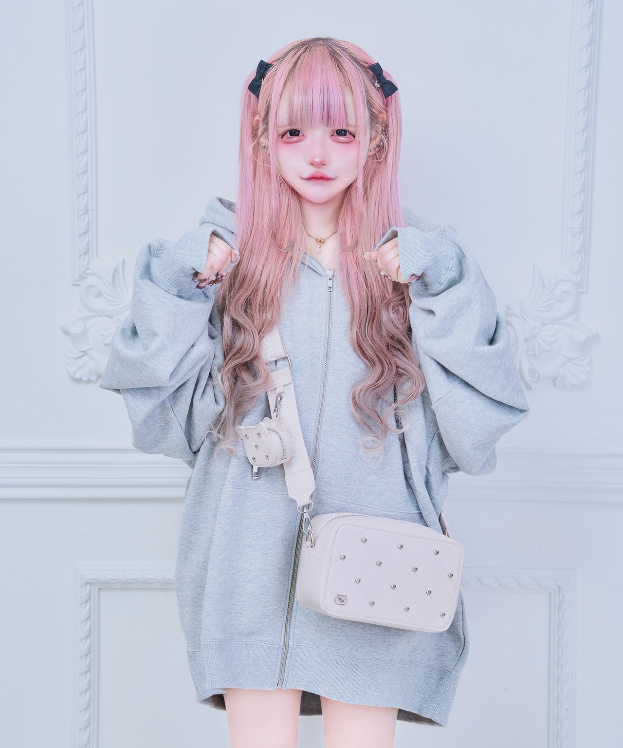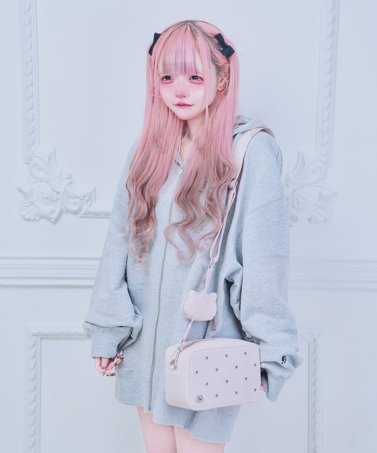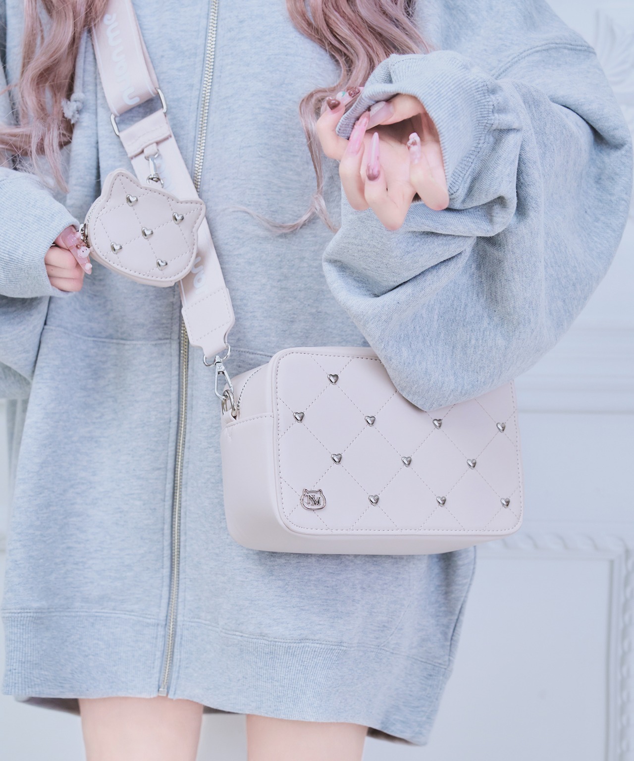 キルティングデザインと猫型のミニポーチがかわいい(とてもかわいい)ショルダーバッグ❤︎